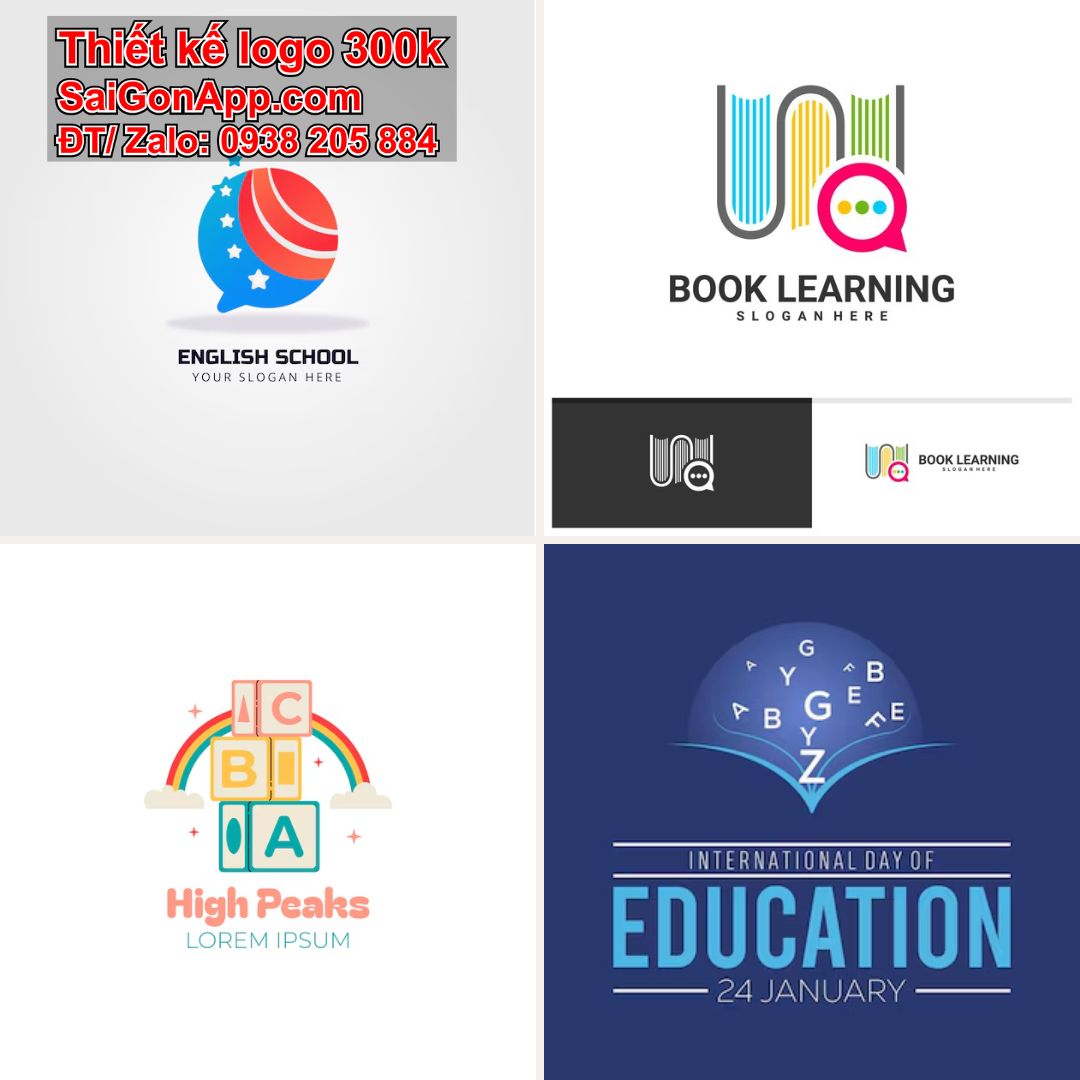 Phong cách này kết hợp giữa biểu tượng và chữ, giúp logo vừa có tính nhận diện cao, vừa truyền tải thông điệp giáo dục hiệu quả.